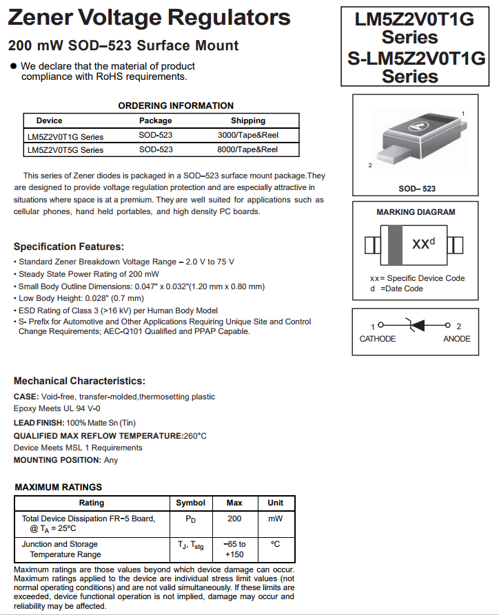 乐山稳压二极管LM5Z2V4T1G,200 mW SOD–523,现货库存,一站式配单服务,多种规格型号齐全。